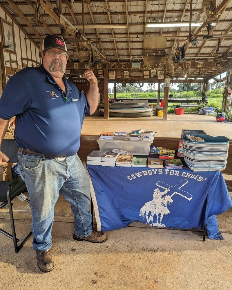 This is a friend of The High Country Bull Riders his name is David Gillett who has gave us a banner of Cowboys for Christ which we now hang it down at the boonedoome with our logo on it as well